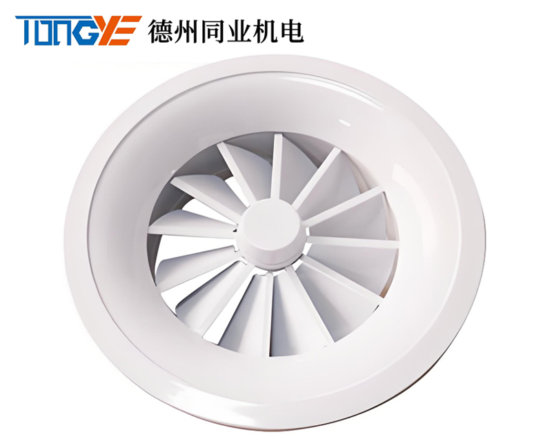 旋流风口是空调系统中的一个送风工具。在空调通风系统中可用作大风量,大温差送风以减少风口数量,安装在天花板或顶棚上,可用于3米以内低空间,也可用二种高度大面积送风,高度甚至可达10米以上。